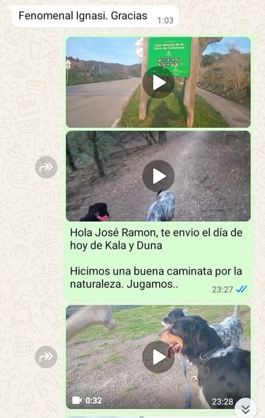 A diferencia de otros cuidadores caninos en zonas urbanas, (Barcelona, Hospitalet..) aquí estará en un entorno limpio, paseos por la naturaleza, sin los riesgos de la ciudad